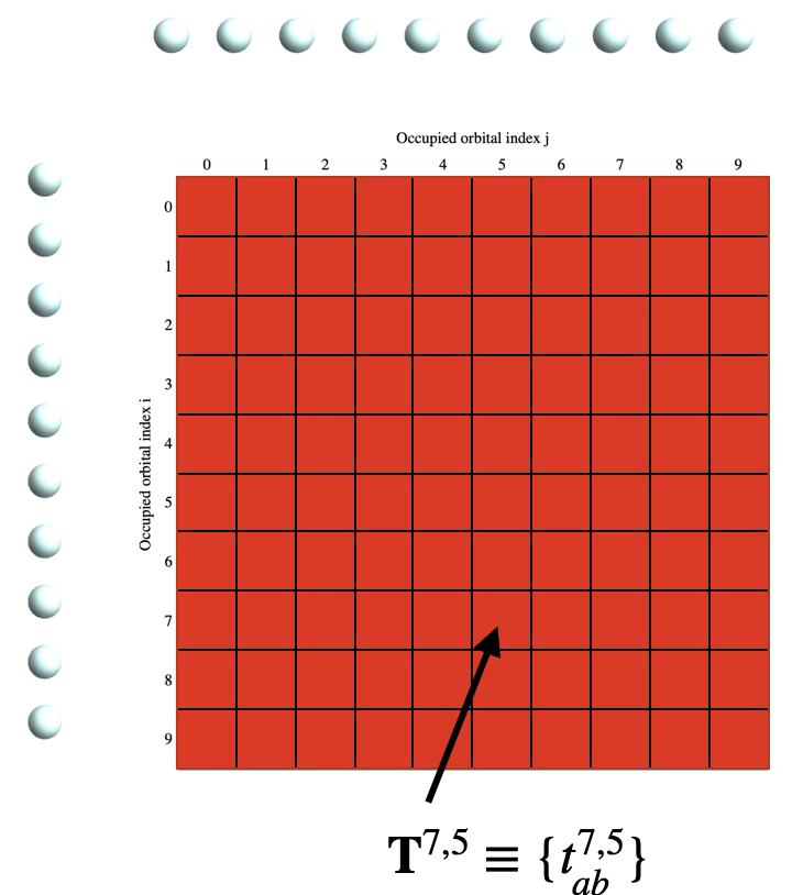 \(\text{O}, \text{V}\): dimension of indices \(i_k\) and \(a_k\)s. With \(\text{V} \gg \text{O}\)